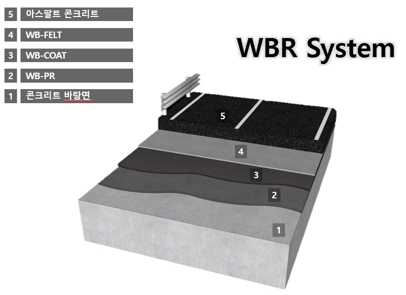 : CMS고무를 활용한 도막재와 섬유보강재를 장비로 동시 시공하는 교면방수공법(WBR System)